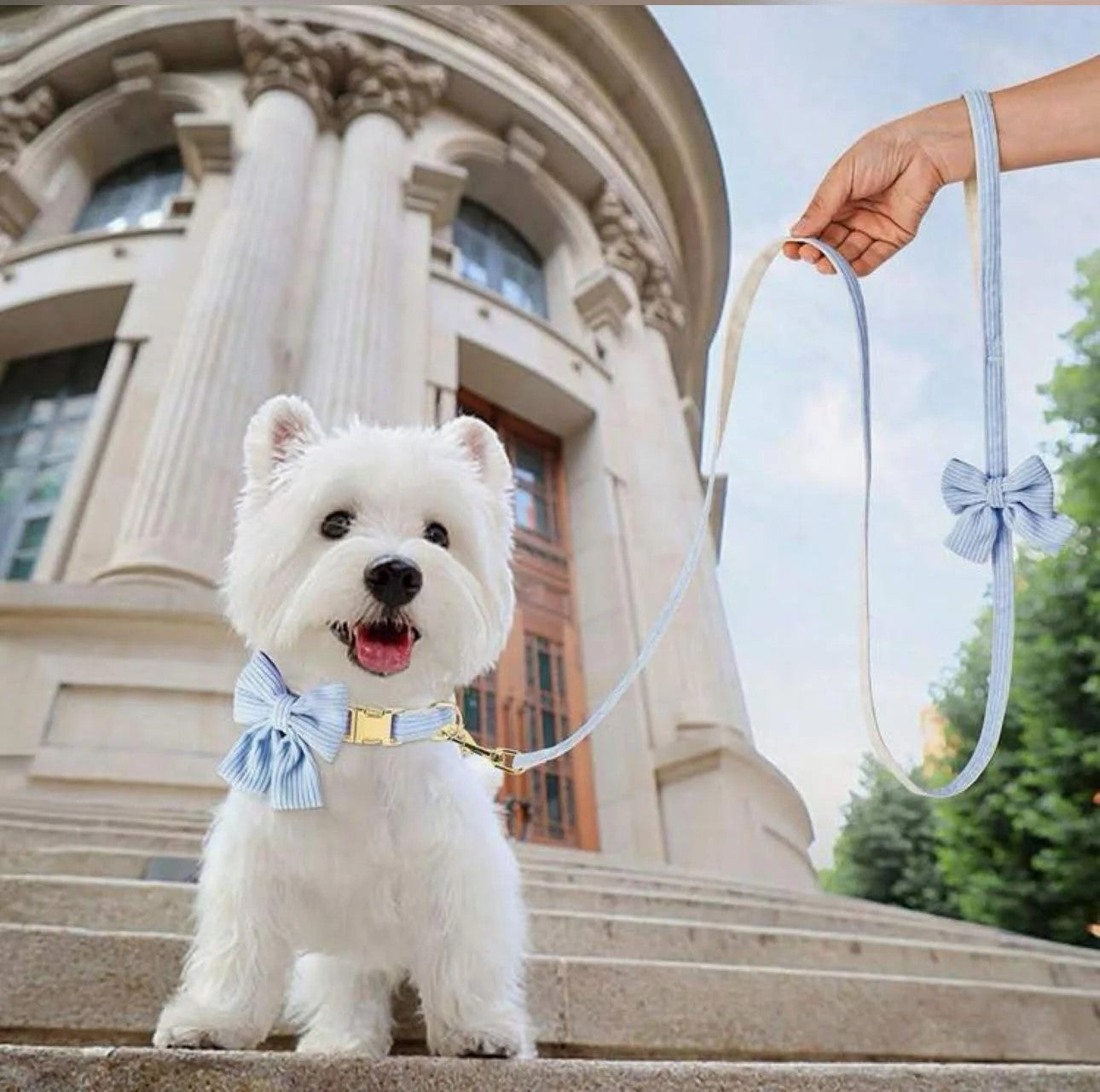 This beautifully designed dog collar and leash set features a soft and elegant dusty blue bow, adding a charming and stylish touch to your pet’s look. Perfect for small to medium-sized dogs, this set is both functional and fashionable.
